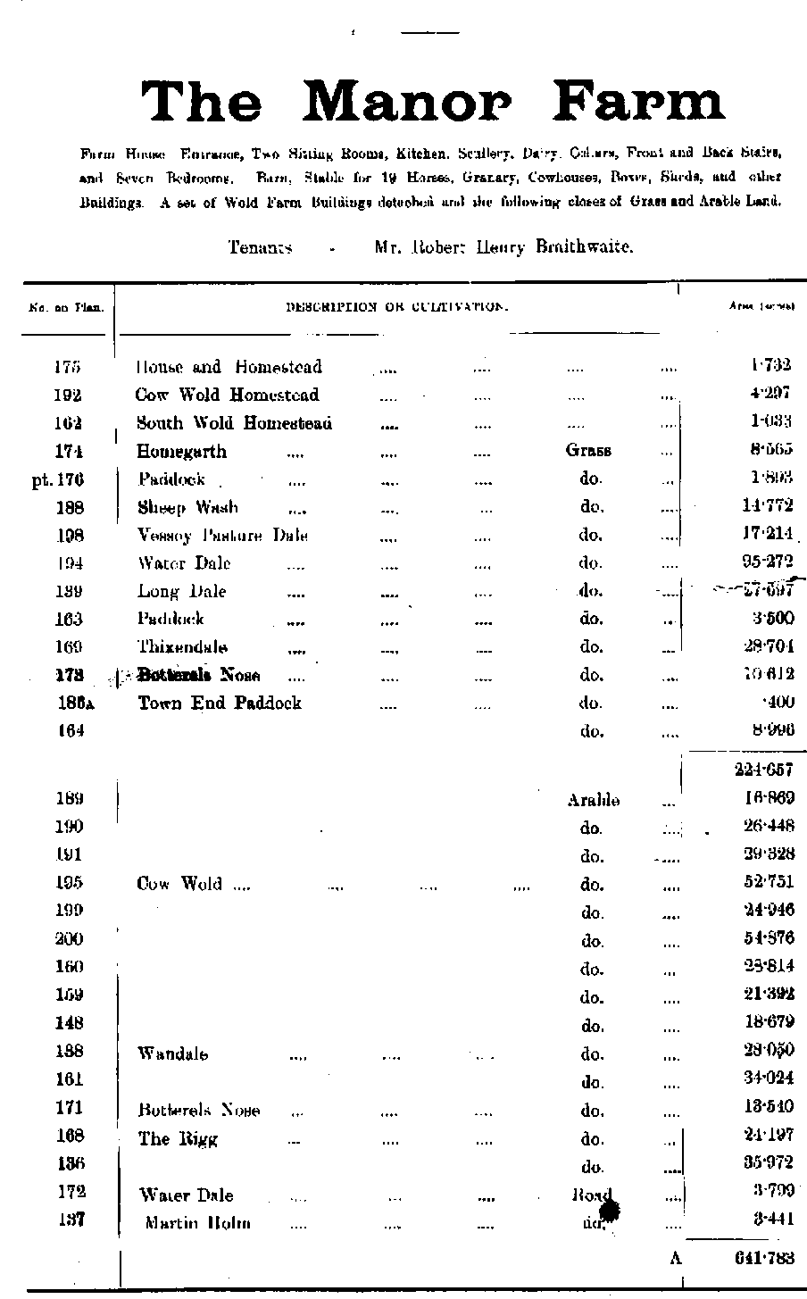 Buildings. A set of Wold Farm Buildings detached and the following closes of Grass and Arable Land.