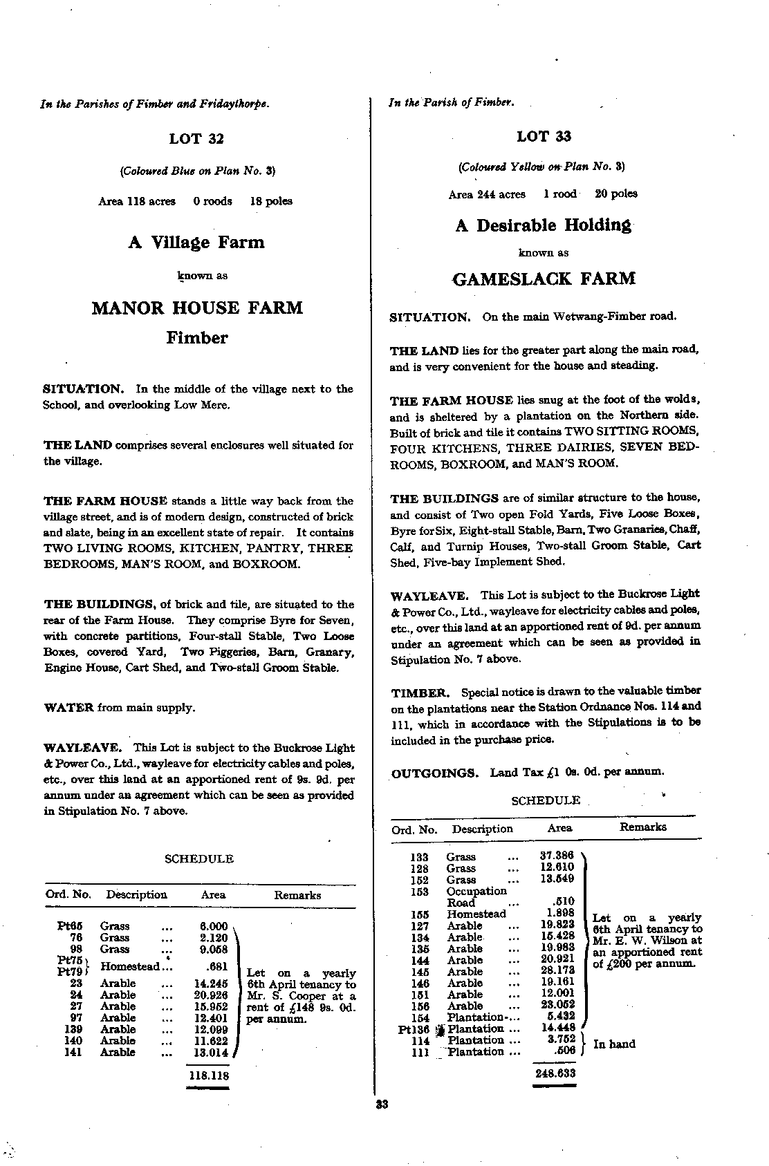 | 33 | Gameslack Farm | E W. Wilson | 248.633 | app. 200 0 0 |